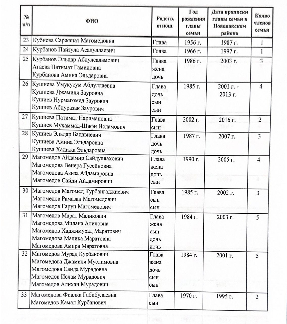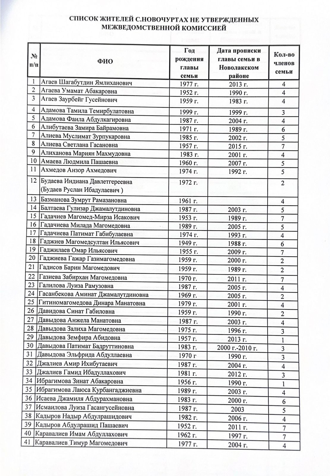 Нами размещены списки к данной статье в целях информирования населения и обеспечения открытости в проводимой работе межведомственной комиссией , а также для получения обратной связи от жителей с.Новочуртах Новолакского района .