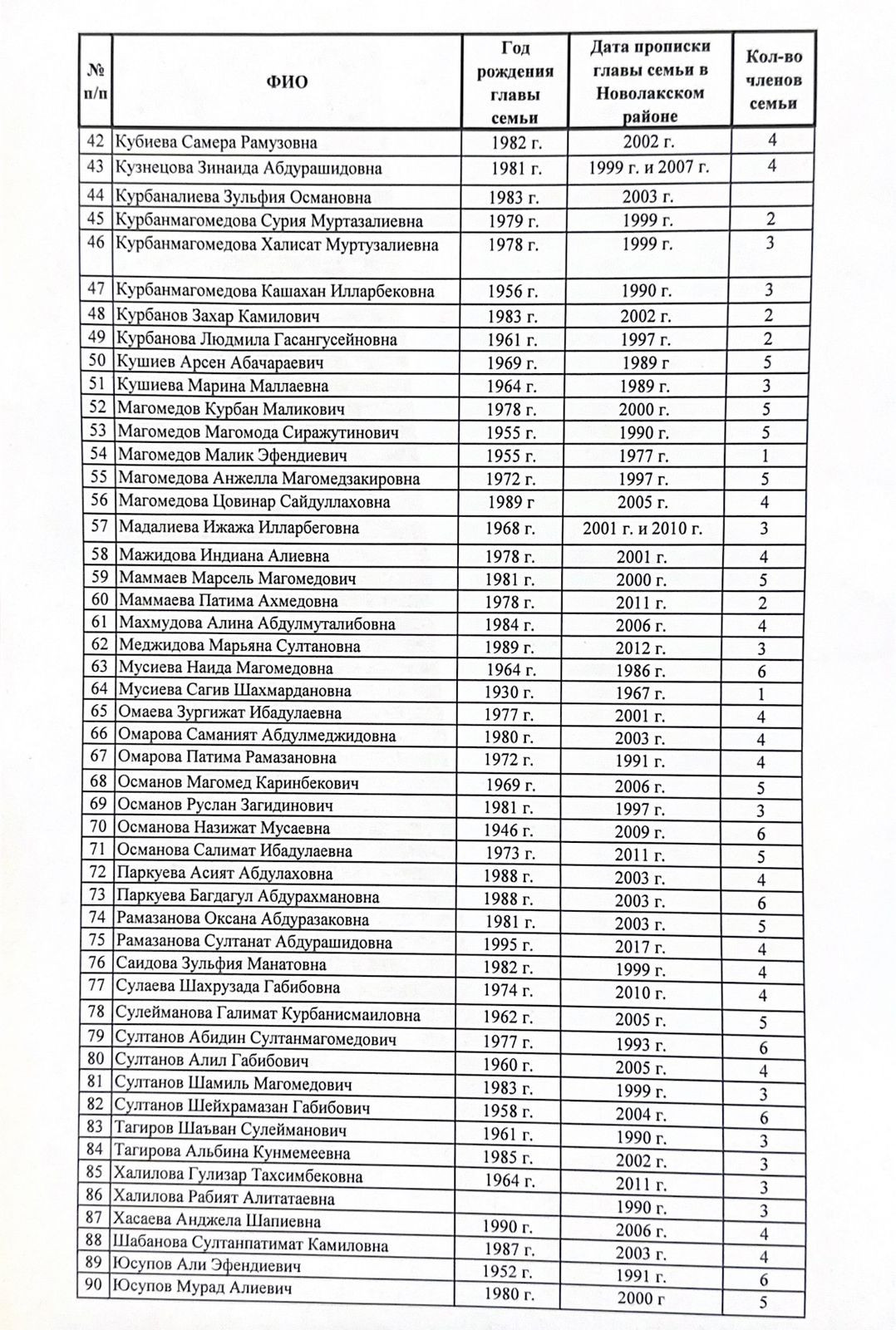 На рассмотрение межведомственной комиссии поступило 134 личных дел жителей с.Новочуртах Новолакского района .Из них прошли комиссию -44, получили отказ-90.